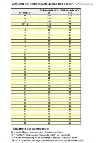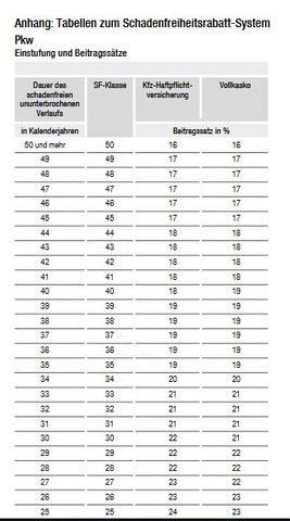 Sf Klassen Tabelle Beitragssatz Bei Der Kfz Versicherung