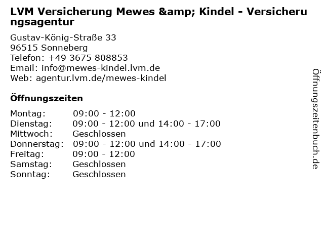 Lvm Versicherungsagentur Jurgen Mewes In Sonneberg Offnungszeiten