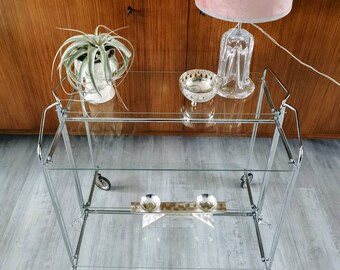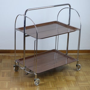 This foldable serving trolley was a limited edition. 60er dinett servierwagen teewagen tisch beistelltisch bar nussbaum chrom 70er 2. Its mechanism is very practical and can be folded.