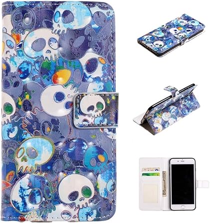 An Jing Ersatzteile For Iphone 7 Plus 8 Plus Gepragte Gemalte Muster Links Rechts Ledertasche Mit Stander Karten Slot Wallet Bilderrahmen Zubehor Color Blue Ghost Head Amazon De Kuche