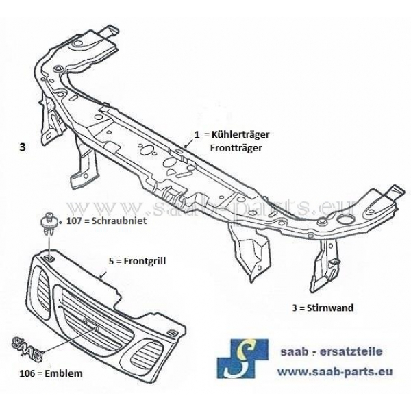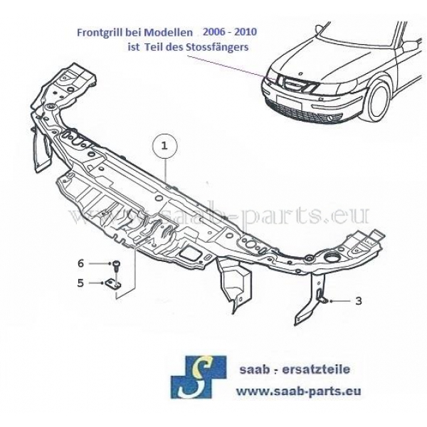 Trager 2006 2010 Saab Parts 9 5 1998 2010 Karosserie Fronttrager Frontgrill 2006 2010 In Stossfangermantel 300