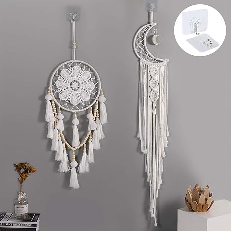 Izsuzee 2 Pcs Makramee Wandbehang Traumfanger Weiss Gross Boho Deko Macrame Boho Wanddeko Wandteppich Gewebte Haus Dekoration Chic Home Decor Geschenke Balkondeko Schlafzimmer Deko Mehrweg Amazon De Kuche Haushalt